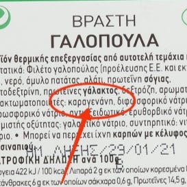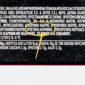 Η καπνιστή γαλοπούλα της εταιρείας «Θράκη» (Θράκης γεύσεις), εμπεριέχει καρμίνιο.
