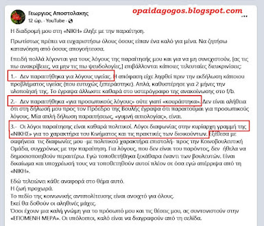 Η απάντηση του μαχητικού Βουλευτή Νίκου Παπαδόπουλου στις νέες αθλιότητες (μην ξεχνάμε ότι μετά το περιστατικό στην Πινακοθήκη το κόμμα συνεχίζει μέχρι κ σήμερα ΝΑ ΜΗΝ προβάλει το πλούσιο έργο του βουλευτή) ήρθε λίγες ώρες μετά: