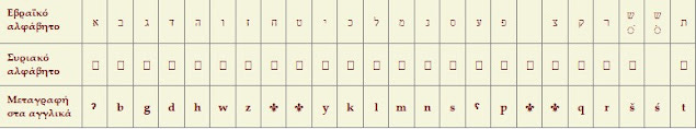 Συσχέτιση τοῦ ἑβραϊκοῦ μὲ τὸ συριακὸ ἀλφάβητο.
