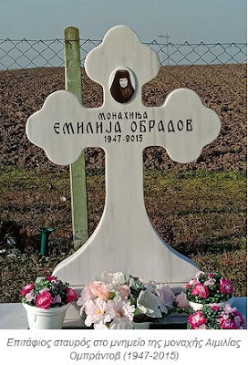 Η μοναχή Αιμίλια αποδήμησε εις τον Κύριο το 2015, εδώ είναι ο τάφος της. Απάντησέ μου: τι πήρε μαζί της στο Θεό; Συνταξιοδότηση; Διαμέρισμα; Νομίζω, ότι πήρε όλες τις καλές πράξεις μαζί της. Θα θέλαμε λοιπόν να σκεφτόμαστε πιο συχνά τις καλές πράξεις και όχι τις γήινες και φθαρτές – πού θα μεταφέρουμε αυτά τα γερμανικά μάρκα με τα δολάρια; Δεν υπάρχουν άλλα μάρκα; Μα, δεν πειράζει.