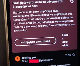 Όπως μας ειδοποίησε αναγνώστης μας (που μας είχε μάλιστα στην «λίστα επαφών» του email του), του ήρθε προειδοποίηση για «επικίνδυνο» περιεχόμενο. Επικίνδυνο για την αλήθεια: