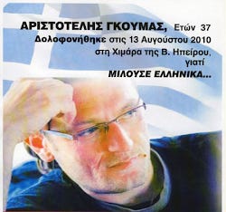 Είχε προηγηθεί καυγάς στο καφενείο του Αριστοτέλη, επειδή μιλούσε ελληνικά στην αρχέγονη, πατρογονική του γη.