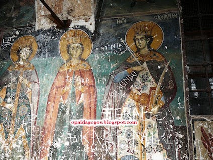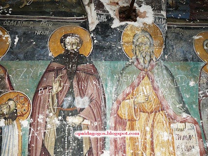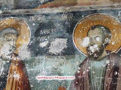 με τα Αλβανικά ονόματα χαραγμένα πάνω στις βυζαντινές αγιογραφίες.