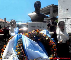Στο μνημόσυνο του Αριστοτέλη Γκούμα, και αφού είχε απομακρυνθεί η προτομή του ήρωα