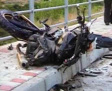 Η στραπατσαρισμένη μοτοσικλέτα του εθνομάρτυρα Αριστοτέλη Γκούμα (δολοφονήθηκε στη Χιμάρα της Β.Ηπείρου στις 12 Αυγούστου 2010).