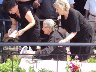 Κάποια στιγμή, αρκετά αργά, ήρθε ιερέας και τέλεσε μνημόσυνο εντός του ναού και τρισάγιο στον μνήμα.