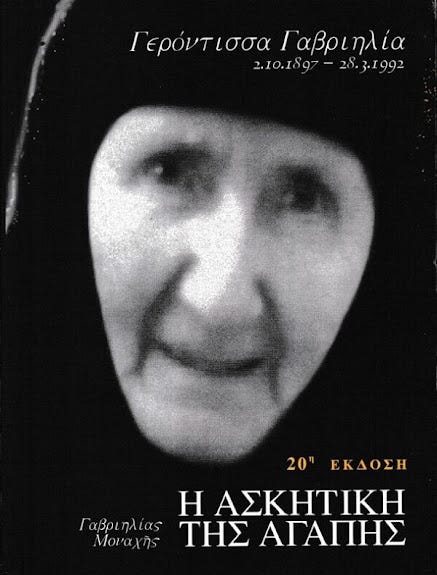 Μὲ ἀφορμὴ τὴν πρόσφατη καὶ περίεργη ἁγιοκατάταξη τῆς γερόντισσας Γαβριηλίας καὶ ἐπειδὴ οἱ καιροὶ εἶναι πονηροὶ καὶ πρέπει νὰ πορευτοῦμε διαμέσου τοῦ ἀνάποδου κόσμου, τῆς Νέας Ἐποχῆς, τῆς Πανθρησκείας, τῆς Παγκοσμιοποίησης, τοῦ Οἰκουμενισμοῦ, ἂς ἔχουμε ὑπ᾿ ὄψιν μας κάποιες ἐπώνυμες κριτικὲς τοποθετήσεις ἀπὸ τὸν π. Βασίλειο Σπηλιόπουλο, καὶ τὸν πρόλογο τοῦ μακαριστοῦ καὶ ἀγαπητοῦ μας π. Σαράντη Σαράντου, στὸ συγκεκριμένο βιβλίο ¨Ἀσκητική τῆς Ἁγάπης", οἱ ὁποῖες ἀφοροῦν τὸ πρόσωπο καὶ τὴν ζωὴ τῆς Γερόντισσας Γαβριηλίας, καὶ οἱ ὁποῖες δημοσιεύτηκαν τὸ 2010 δηλαδὴ ἀρκετὰ χρόνια πρίν, ἀκριβῶς γιὰ νὰ προλάβουν ἐξελίξεις.