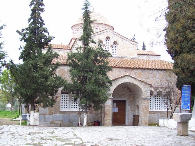 Το μνημείο αυτό είναι προσπάθεια μετάβασης από την παλαιοχριστιανική Βασιλική (Αρχιτεκτονική) στον Βυζαντινό ρυθμό. Ο ναός διασώζει θαυμάσια παλαιοχριστιανικά γλυπτά, σπάνιες επιγραφές της χριστιανικής, αλλά και της προχριστιανικής περιόδου, που χρησιμοποιήθηκαν ως οικοδομικό υλικό. Πιθανότατα ο ναός να σχεδιάστηκε ως ταφικό μνημείο του χορηγού του (μολονότι αυτό δεν συνηθιζόταν στη Βυζαντινή Ελλάδα) και ίσως το κατακόρυφο ηλιακό ρολόι που κοσμεί τον ναό να είναι ένα είδος αναφοράς στην αιώνια ζωή. Ούτως ή άλλως ο κτήτορας του ναού θέλησε το κτίσμα αυτό να έχει: «τερπνόν αποστίλβον περικαλλέα πάντοθεν αίγλην». Ο γλυπτικός διάκοσμος του καθολικού της Μονής είναι πλούσιος στις εσωτερικές και εξωτερικές του επιφάνειες, πολλά γλυπτά μέλη όμως (από αρχαίους ναούς ή και από πρωτοχριστιανικό νεκροταφείο) είναι ενσωματωμένα και στα μεταγενέστερα κελιά, νότια του καθολικού και στο πρόπυλο δυτικά, ενώ άλλα βρίσκονται στις αποθήκες. Τα παλαιότερα κελιά της Μονής βρίσκονται δυτικά από τα νεότερα, σε ένα κτίριο που αποτελείται από πέντε διαδοχικούς κεραμοσκεπείς χώρους.