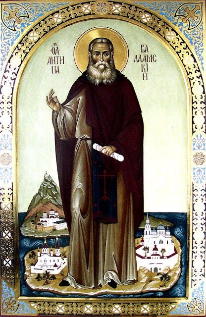 Κήρυξε και δίδαξε στη Ρωσία και κατέληξε στο νησί Λάντογκα, κοντά στη Φιλανδία, όπου μόνασε στη Μονή Βάλαμο. Εκεί ο Όσιος Αντίπας μετέφερε το ησυχαστικό πνεύμα του Αγίου Όρους και αφού έζησε θεοφιλώς, κοιμήθηκε με ειρήνη το 1882 μ.Χ.