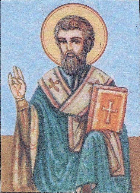 Ἀνεφάνης Ὅσιε τῇ Ἐκκλησίᾳ, ὥσπερ ἄλλος ἥλιος, ταύτην φωτίζων ἀστραπαῖς, τῶν σῶν δογμάτων Θεόφανες, ὡς θυηπόλος Χριστοῦ τοῦ Θεοῦ ἡμῶν.