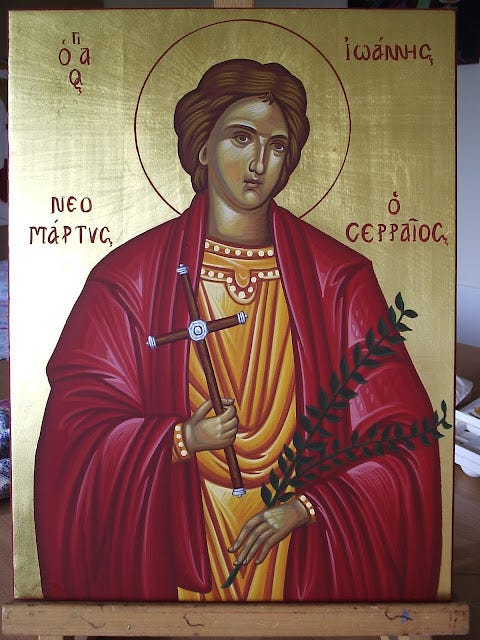 Ο Άγιος Ιωάννης ο Σερραίος μαρτύρησε για την πίστη του Χριστού περί το 1480 μ.Χ. και η μνήμη του γιορτάζεται στις 12 Μαΐου.