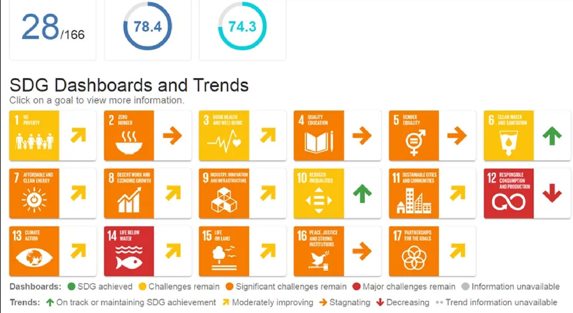 Βρήκαμε αμέσως αυτόν τον ιστότοπο, ο οποίος έχει αρκετές ενδιαφέρουσες ενότητες και στον οποίο παρουσιάζεται η πρόοδος των στόχων για τα επιμέρους έθνη. Σε αυτό το σύνδεσμο μπορείτε να δείτε και τα αποτέλεσματα των στόχων Βιώσιμης Ανάπτυξης για την Ελλάδα.