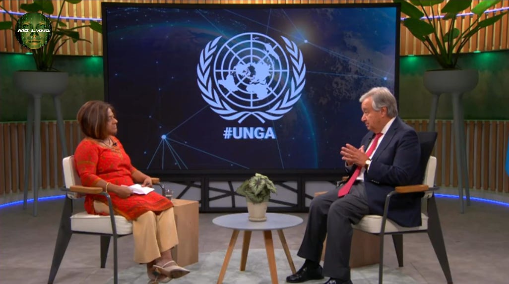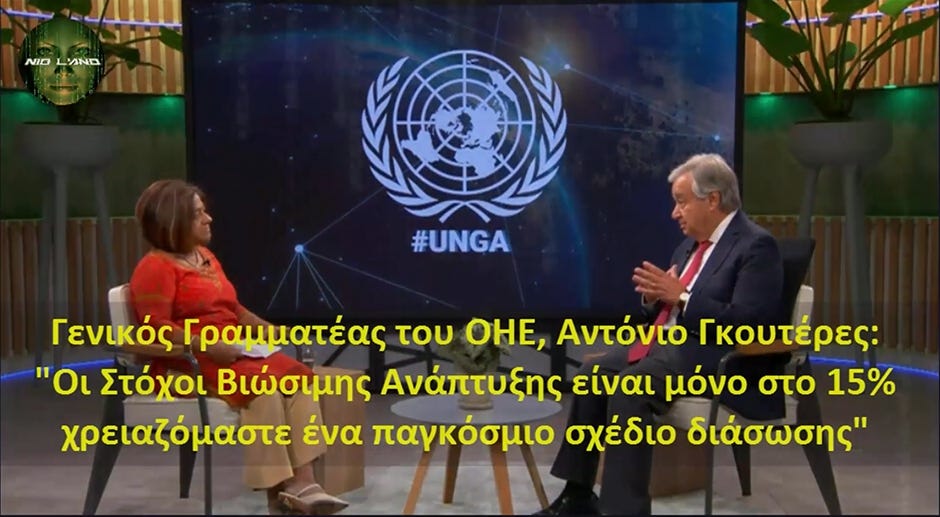 16 Σεπτεμβρίου 2023: Ομιλία του Γενικού Γραμματέα του ΟΗΕ Αντόνιο Γκουτέρες κατά την έναρξη του "Σαββατοκύριακου Δράσης για τους ΣΒΑ (Στόχους Βιώσιμης Ανάπτυξης)“ που προλόγισε στη Σύνοδο Κορυφής του ΟΗΕ στις 18 και 19 Σεπτεμβρίου. Μία ομιλία γεμάτη υποκρισία και ψεύδος ὀπως όλη η Νεοταξική σἐχτα που επιθυμεί διακαώς να μας φυλακίσει με τα ψηφιακά δεσμά της.