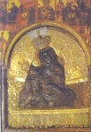 O δε Σουλεϊμάν θαυμάζωντας, διατί δεν εδύνετο να έμβη, εσήκωσε τους οφθαλμούς του, και βλέπει επάνω εις την πόρταν της Πόλεως ιστορισμένην διά ψηφίδος, την Δέσποιναν ημών Θεοτόκον καθημένην επί θρόνου, και βαστάζουσαν εις τας αγκάλας της τον Kύριον ημών Iησούν Xριστόν. Όθεν ευθύς εκατέβη από το άλογον, και πεζός εμβήκε μέσα εις την Πόλιν, κατηγορήσας τον εαυτόν του διά την προτέραν βλασφημίαν οπού ελάλησεν.