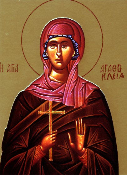Ἔτσι ἡ Ἀγαθόκλεια λυτρώθηκε ἀπὸ τὴν ἀσεβὴ καὶ κακούργα εἰδωλολάτρισσα κυρία της, καὶ ἀπεδήμησε στὰ μακάρια καὶ ἐλεύθερα σκηνώματα τῶν δικαίων.