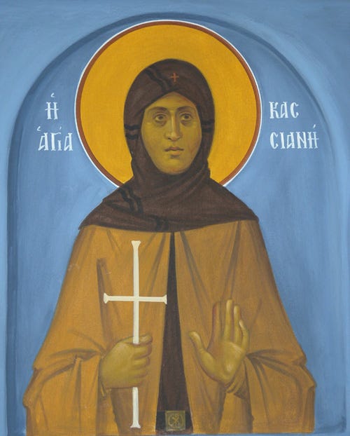 Τούς τρεῖς ἀσβέστους φωστήρας τῆς ὑπερφώτου Θεότητος, τούς τήν ἐκκλησίαν ἀκτῖσι θαυμάτων θείων φαιδρύναντας˙ τούς ἀειῤῥόους ποταμούς τῆς Γορτύνης τούς τήν Κρήτην πᾶσαν Πνεύματος θείου χάρισι κατακλύσαντας˙ Εὐτύχιον τόν θεῖον, Εὐτυχιανόν τε τόν ὅσιον, σύν Κασσιανῇ αὐταδέλφῳ ἀσκητρίᾳ θεόφρονι˙ πάντες οἱ τῶν ὁσίων πιστοί μαθηταί συνελθόντες ὕμνοις τιμήσωμεν˙ αὐτοί γάρ τήν Τριάδα ὑπέρ ἡμῶν ἀεί ἱκετεύουσιν.