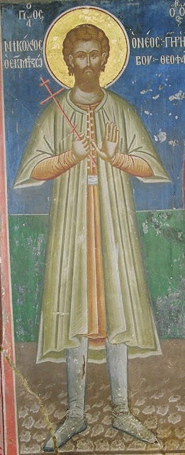 Ὡς ἀστὴρ νεόφωτος, λαμπρῶς ἀθλήσας, ἐν ὑστέροις ἔτεσι, τῇ Ἐκκλησίᾳ τοῦ Χριστοῦ, ἐδείχθης Μάρτυς Νικόλαε· διὸ γεραίρει τὴν θείαν σου ἄθλησιν.