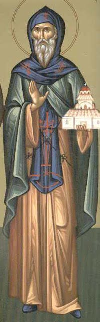 Βλαστὸς Ἰωαννίνων ἀνεδείχθης περίδοξος, καὶ θεῖος πολιοῦχος τῆς Ναούσης θεόφανες- ὡς ἄγγελος γὰρ ζήσας ἐπὶ γῆς, θαυμάτων ἐκομίσω δωρεάν, καὶ παρέχεις τᾶς ἰάσεις τοὶς εὐλαβῶς, προστρέχουσι τὴ σκέπη σου. Δόξα τῷ σὲ δοξάσαντι Χριστῷ, δόξα τῷ σὲ στεφανώσαντι, δόξα τῷ ἐνεργούντι διὰ σου, πάσιν ἰάματα.