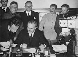 Ἡ Γερμανία τοῦ Χίτλερ καὶ ἡ Σοβιετικὴ Ἕνωση συνάψανε συμμαχία. Ὁ ὅρος Γερμανοσοβιετικὸ Σύμφωνο μὴ Ἐπίθεσης ἢ Σύμφωνο Μολότοφ - Ρίμπεντροπ (ἐπίσημα: Γερμανοσοβιετικὴ Συνθήκη) χαρακτηρίζει τὸ σύμφωνο μὴ ἐπίθεσης ποὺ ὑπέγραψαν στὶς 23 Αὐγούστου 1939 στὴ Μόσχα ὁ Ὑπουργὸς Ἐξωτερικῶν τῆς ναζιστικῆς Γερμανίας Γιοάχιμ φον Ρίμπεντροπ (Joachim von Ribbentrop) καὶ ὁ Ὑπουργὸς Ἐξωτερικῶν τῆς Σοβιετικῆς Ἕνωσης, Βιατσεσλὰβ Μιχαήλοβιτς Μολότοφ (Вячесла́в Миха́йлович Мо́лотов). Τὴν συνθήκη αὐτὴ ἐπικύρωσε τὸ Ἀνώτατο Σοβιέτ, ὀκτὼ ἡμέρες μετά, στὶς 31 Αὐγούστου. Ὁ ἄξονας θέλει νὰ κατακτήσει τὸν κόσμο. Ἔχοντας τὰ νῶτα του καλυμμένα.