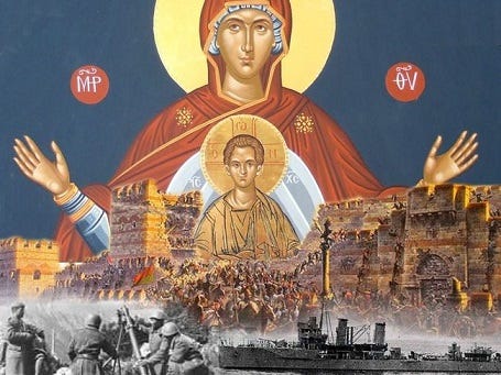 Οἱ φαντάροι μας, τὰ νιᾶτα τῆς πατρίδος μας, πολεμοῦν καὶ νικοῦν τὶς σιδερόφρακτες δυνάμεις τοῦ Μουσολίνι. Μὲ τὴν ἰαχὴ «ἀέρα» ὁ Ἕλληνας φαντάρος νικᾷ κατὰ κράτος τὶς μεραρχίες τῆς Ἰταλίας καὶ ἐλευθερώνει ἑλληνικὲς περιοχὲς καὶ ἡ ἑλληνικὴ σημαία κυματίζει ὑπερήφανα καὶ ὁ ἐθνικὸς ὕμνος σκορπάει ρίγη ὑπερηφάνειας καὶ συγκινήσεως. Οἱ στρατιῶτες μας «βλέπουν» νὰ τοὺς ὁδηγεῖ στὴν νίκη ἡ ὑπέρμαχος στρατηγός, ἡ Ὑπεραγία Θεοτόκος. Ἡ Ἐκκλησία τῆς Ἑλλάδος ἀποφάσισε, το 1952, ἡ γιορτὴ τῆς Ἁγίας Σκέπης ἀπὸ τὴν 1η Ὀκτωβρίου νὰ μεταφερθεῖ στὶς 28 Ὀκτωβρίου, μὲ τὸ αἰτιολογικὸ ὅτι ἡ Παναγία βοήθησε τὸν Ἑλληνικὸ Στρατὸ στὸν πόλεμο τῆς Ἀλβανίας. Οἱ πολεμιστὲς τῆς ἐποχῆς πολλὲς ἐμφανίσεις ἔχουν καταγράψει τῆς ὑπερμάχου στρατηγοῦ καὶ διηγηθεῖ στὰ παιδιά των καὶ εἰς τὰ ἐγγόνια των. Οἱ διηγήσεις αὐτὲς ἔχουν περάσει στὴν συνείδηση τοῦ Ἑλληνικοῦ Λαοῦ.