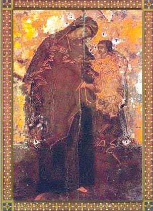 Μήτηρ ὡς φιλόστοργος τοῖς πιστοῖς, ἔδωκας, Παρθένε, ὡς ἀκένωτον ποταμόν, χάριτος ἐνθέου, τήν θείαν Σου Εἰκόνα, ἥν πίστει προσκυνοῦντες, Σέ μεγαλύνομεν.