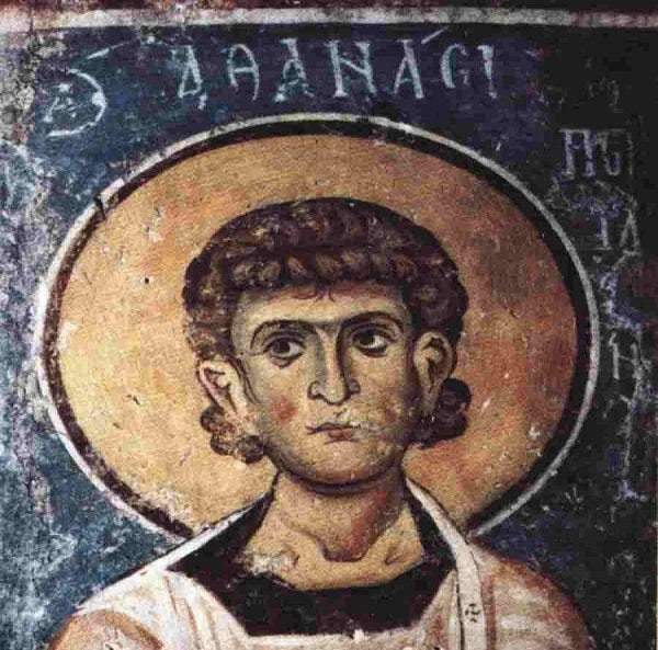 Τη μεγάλη διάδοση της τιμής του Οσίου Αθανασίου σ’ όλη την Κύπρο μαρτυρεί και η αγιογράφησή του σε όλους σχεδόν τους ναούς του νησιού, από τον 12ο αιώνα τουλάχιστον και εξής[14]. Στις τοιχογραφίες ο Όσιος απεικονίζεται ως διάκονος, πράγμα το οποίο δεν μαρτυρείται από τον Όσιο Αναστάσιο στον κατωτέρω δημοσιευόμενο Βίο του. Ταπεινά φρονούμε πως ο Όσιος πιθανόν να ήταν αναγνώστης ή υποδιάκονος ή να είχε κάποια υπηρεσία στον ναό. Επίσης είναι πιθανόν η παράστασή του να συμβολίζη την αφιέρωσή του στον Θεό και τη διακονία του στον πλησίον. Ας μην ξεχνούμε εξάλλου και τη μικρή ηλικία, κατά την οποία εκοιμήθη ο Άγιος (λίγο μετά τα είκοσί του χρόνια), που δεν επέτρεπε, σύμφωνα με τους Ιερούς Κανόνες, να ήταν διάκονος[15].