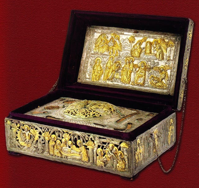 Κατὰ τὰ τελευταῖα ἔτη τοῦ αὐτοκράτορος Κωνσταντίνου τοῦ Πορφυρογέννητου (913 – 959 μ.Χ.) ἐδηλώθη σὲ αὐτὸν ὅτι σὲ κάποια σημεῖα τῆς Πόλεως κρύπτονται ἐσθῆτες τῶν Ἁγίων Ἀποστόλων. Ἔτσι, ἀφοῦ τὶς ἀνέλαβε, τὶς ἀποθησαύρισε στὸ ναὸ τῶν Ἁγίων Ἀποστόλων.