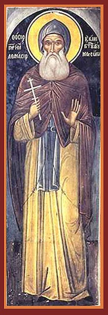 Τὰ ἄνω ποθῶν, τὴν κλίμακα ἐτέκτηνας, τὰ κάτω μισῶν, σαργάνην Πάτερ ἔπλεξας, δι’ ὧν πρὸς ὕψος ἔδραμες, ἀπαθείας σοφὲ Ἀθανάσιε· ἐν ὑψηλῇ γὰρ πέτρᾳ τὸ φῶς, ὁσίων ἐκλάμπεις ἀρετῶν τοῖς ἐν γῇ.