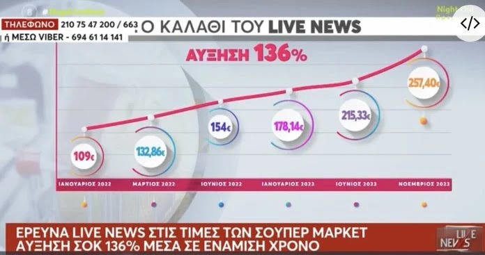 Σήμερα, ακριβώς τα ίδια προϊόντα έχουν φτάσει στα 257,40 ευρώ.
