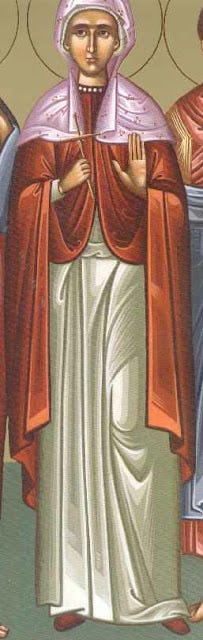 Τὴν νυμφευθεῖσαν, τῷ Χριστῷ ἑκουσίως, καὶ στολισθεῖσαν, ἀρεταῖς τὴν καρδίαν, θεοπρεπῶς ὑμνήσωμεν Πιστῶν ἡ πληθύς· αὕτη γὰρ κατήσχυνεν, Ἀλμακίου τὸ θράσος, λάμψασα ὡς ἥλιος, μέσον τῶν ἐκζητούντων, καὶ μετὰ ταῦτα ὤφθη τοῖς ἐν γῇ, στήριγμα θεῖον, τὴν πίστιν κρατύνασα.