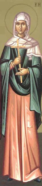 Τῷ φωτὶ τῆς χάριτος, καταυγασθεῖσα, εὐσεβῶς ἠγώνισαι, ὑπὲρ τῆς δόξης τοῦ Χριστοῦ, Δροσὶς Μαρτύρων συνόμιλε, μεθ’ ὧν δυσώπει, ὑπὲρ τῶν ψυχῶν ἡμῶν.