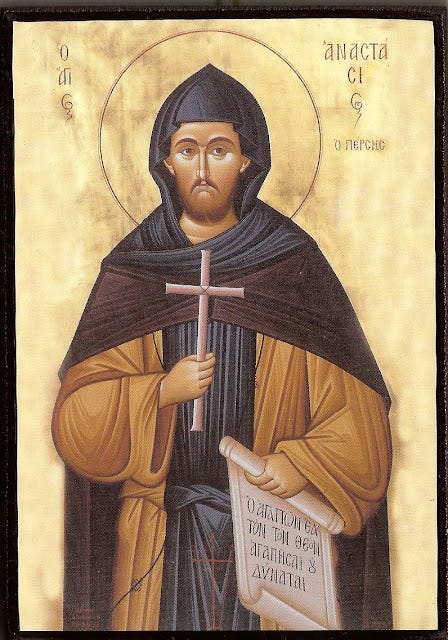 Η ανακομιδή των λειψάνων του Αγίου οσιομάρτυρα Αναστασίου του Πέρσου (βλέπε 22 Ιανουαρίου), έγινε το 638 μ.Χ., δέκα χρόνια μετά το μαρτυρικό του τέλος.