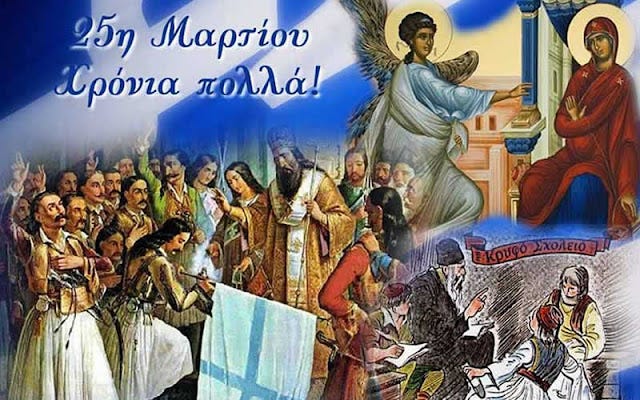Ἀγάλλεται καὶ πανηγυρίζει ἡ Ὀρθοδοξία καὶ σύμπας ὁ Ἑλληνισμός. Ξημερώνει ἡ 25η Μαρτίου. Ἡμέρα ποὺ σηματοδοτεῖ τὴν Ἐλευθερία τοῦ ἀνθρώπου. Ἐλευθερώνεται ὁ ἄνθρωπος ἀπὸ τὰ δεσμὰ τῆς ἁμαρτίας καὶ ὁ Ἕλληνας ἀποκτᾷ τὴν Λευτεριά του. Τὸν εὐαγγελισμὸ τῆς Ὑπεραγίας Θεοτόκου καὶ τὴν ἔναρξη τοῦ ἀγῶνα τοῦ 21 γιὰ τὴν Ἐλευθερία πανηγυρίζει ὁ ἑλληνισμὸς πανταχοῦ τῆς γῆς.