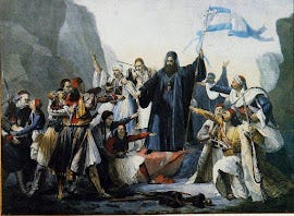 Ὁ μεγάλος ἀγωνιστὴς καὶ ἥρωας τοῦ 21 ὁ Θεόδωρος Κολοκοτρώνης, ὁ Γέρος τοῦ Μοριᾶ βροντοφωνάζει «Ὁ θεὸς ὑπέγραψε τὴν λευτεριὰ τῆς Ἑλλάδας καὶ δὲν παίρνει τὴν ὑπογραφὴ Του πίσω» . Μὴ γένοιτο. Ἰσχυρίζονται κάποιοι ὅτι ὁ ξεσηκωμὸς τῶν Ἑλλήνων ἐπηρεάστηκε ἀπὸ τὴ λεγόμενη γαλλικὴ ἐπανάσταση. Ἀλήθεια, οἱ φίλοι μας οἱ γάλλοι ποιόν κατακτητὴ καὶ ἀλλοεθνῆ καὶ ἀλλόθρησκο δυνάστη θέλανε νὰ διώξουν καὶ οἱ ἐπαναστατοῦντες δήλωσαν ὅτι αὐτὸ γίνεται γιὰ «τοῦ Χριστοῦ τὴν πίστη τὴν ἁγία»; Δὲν βρῆκα πουθενὰ κάτι τέτοιο. Ἁπλᾶ ἡ γαλλικὴ ἐπανάσταση χρονικὰ προηγήθηκε.