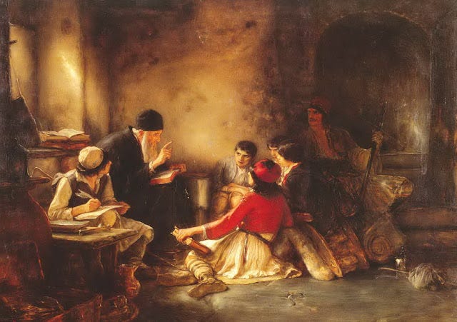 Καταφεύγει στὸ κρυφὸ σχολειὸ γιὰ νὰ μάθει λίγα γράμματα. Νὰ μὴ λησμονήσει τὴν Ἱστορία του, τὴ Σαλαμῖνα, τίς Θερμοπύλες, τον Μέγα Ἀλέξανδρο καὶ πολλὰ ἄλλα. Ἐκεῖ στὸ τρεμάμενο φῶς τοῦ καντηλιοῦ, κατὰ τὸν ποιητή, μαθαίνει τί εἶχε, τί ἔχει, τί ἔπρεπε νὰ ἔχει καὶ παραμένει Ἕλληνας. Ὀλίγα κολλυβογράμματα σπουδάζει ἀπὸ τὴν ὀκτώηχο καὶ τὸ ψαλτήρι. Γαλουχεῖται καὶ στὰ νάματα τῆς Ὀρθοδοξίας. Ὑπάρχουν, δυστυχῶς, λίγοι βέβαια ἀρνητὲς τοῦ κρυφοῦ σχολείου, οἱ θαυμαστὲς τῆς θεωρίας ὅτι οἱ πόντιοι καὶ οἱ Μικρασιᾶτες δὲν σφαγιάστηκαν ἀπὸ τοὺς Τούρκους, ἁπλᾶ ἐξ αἰτίας τοῦ συνωστισμοῦ πέθαναν ἀπὸ ἀσφυξία. Αὐτοὶ ἀρνοῦνται τὴν ὕπαρξη τοῦ κρυφοῦ σχολείου. Εἶναι ἐλάχιστοι, γιὰ νὰ μᾶς κάνουν καὶ ἐμᾶς ἀρνητὲς τῆς ἱστορικῆς ἀληθείας.