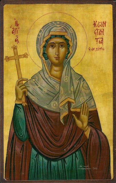 Ασκητή τω μεγάλω διακονήσασα, εν Πάφου περιοικίδι, τω ασκουμένω σεπτώς, Ιλαρίωνι και πίστει διαπρέψασα, ώφθης κοσμήτωρ γυναικών, και προστάτις Παφηνών, θεόσοφε Κωνσταντία, ημίν Χριστόν η αόκνως, ιλεουμένη τοις τιμώσί σε.