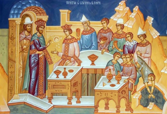 Καὶ ἐξαποστέλλει ξανὰ τοὺς ὑπηρέτες του, ἀγγέλους καὶ ἀνθρώπους, στὰ πέρατα τῆς γῆς νὰ συνάξουν τοὺς περιπλανώμενους σὲ «ὁδοὺς καὶ φραγμούς». Φεύγει ἀπὸ τὸν «ἐκλεκτό» του λαὸ καὶ καλεῖ τὰ ἔθνη, τοὺς εἰδωλολάτρες, ποὺ μέχρι τότε ἦταν «οὐ λαός», δὲν ἦταν λαός του, ἀλλὰ γύριζαν ἀνέστιοι καὶ ἄστεγοι στὶς ἐρημιὲς τοῦ κόσμου. «Καλέσω μου τὰ ἔθνη, κἀκεῖνά με δοξάσουσι», λέει ὁ Χριστὸς στοὺς ἀχάριστους Ἰουδαίους γεμάτος πίκρα, ὅταν ἐκεῖνοι, παρὰ τὶς εὐεργεσίες του, τὸν ἀπορρίπτουν.