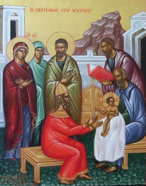 Τὴν κατὰ σάρκα Γέννηση τοῦ Κυρίου μας ἀκολουθεῖ ἡ Περιτομή, ποὺ κατὰ τὸ ἔθος τῶν Ἑβραίων γινόταν τὴν ὀγδόη ἡμέρα ἀπὸ τῆς Γεννήσεως ἄρρενος τέκνου.