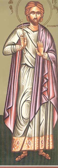 Ιεράν προσθήκην σε, η των Μαρτύρων χορεία, Αγγελή εδέξατο, εν ουρανώ γηθομένη, ηθλήσας και νυν νομίμως γενναιόφρον, ήσχυνας το των τυράννων άθεον θράσος, και το στέφος εκομίσω, της αφθαρσίας, ξίφει την κάραν τμηθείς.