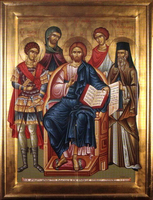 Χαίροις ἱερέων ἡ καλλονή· χαίροις τῶν Ὁσίων, καὶ Μαρτύρων ὁ κοινωνός· χαίροις ὁ θεόθεν, φανεὶς δεδοξασμένος, Γεώργιε τρισμάκαρ, τοῖς σὲ γεραίρουσι.