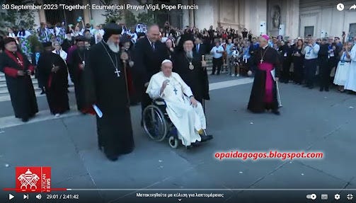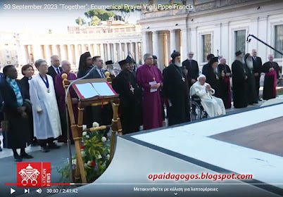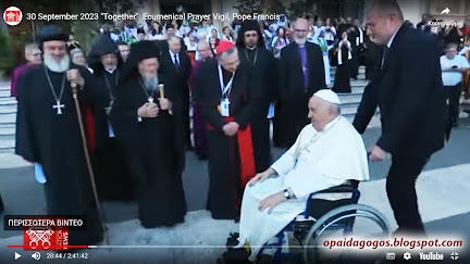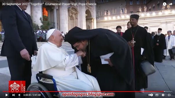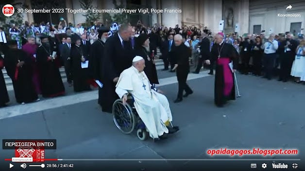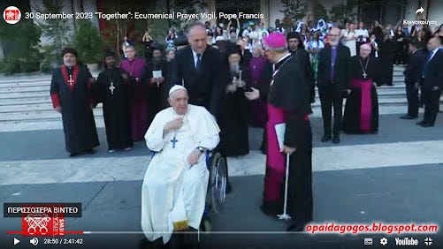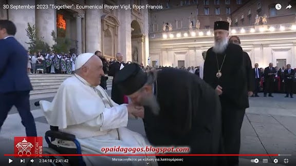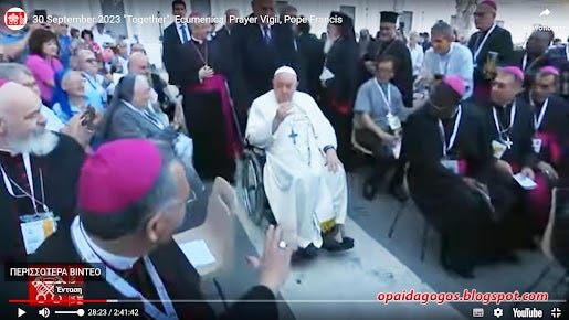30/9/2023: ΑΠΟΚΛΕΙΣΤΙΚΟ. Ορθόδοξοι ρασοφόροι ΠΡΟΣΚΥΝΟΥΝ το χέρι του Πάπα! Κατάντια στην νέα συμπροσευχή Πάπα - Βαρθολομαίου κ πλήθους αιρετικών. Βίντεο και Φωτογραφίες. Και διηγώντας τα να κλαις ...