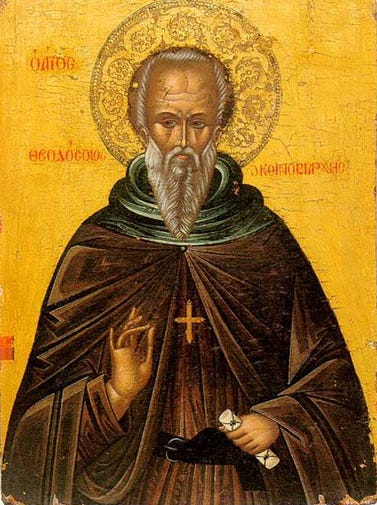Ας παρακαλέσωμε, λοιπόν, τον Άγιο Θεοδόσιο, «ὡς δόση Θεοῦ γενόμενο», να μάς φωτίζη με την λάμψη του και να μάς χαρίζη πνευματική διαύγεια και καθαρότητα ψυχής, ώστε να μπορούμε να διακρίνωμε και στην εποχή μας φωτεινές μορφές, που θα βοηθήσουν και εμάς να αγωνιστούμε σθεναρά ενάντια στους σημερινούς εξ ίσου ύπουλους εχθρούς της πίστεως και να εργαστούμε, και μάλιστα να συνεργαστούμε, με πίστη, σύνεση και αγάπη, για την κοινή πρόοδο και σωτηρία. Αμήν!