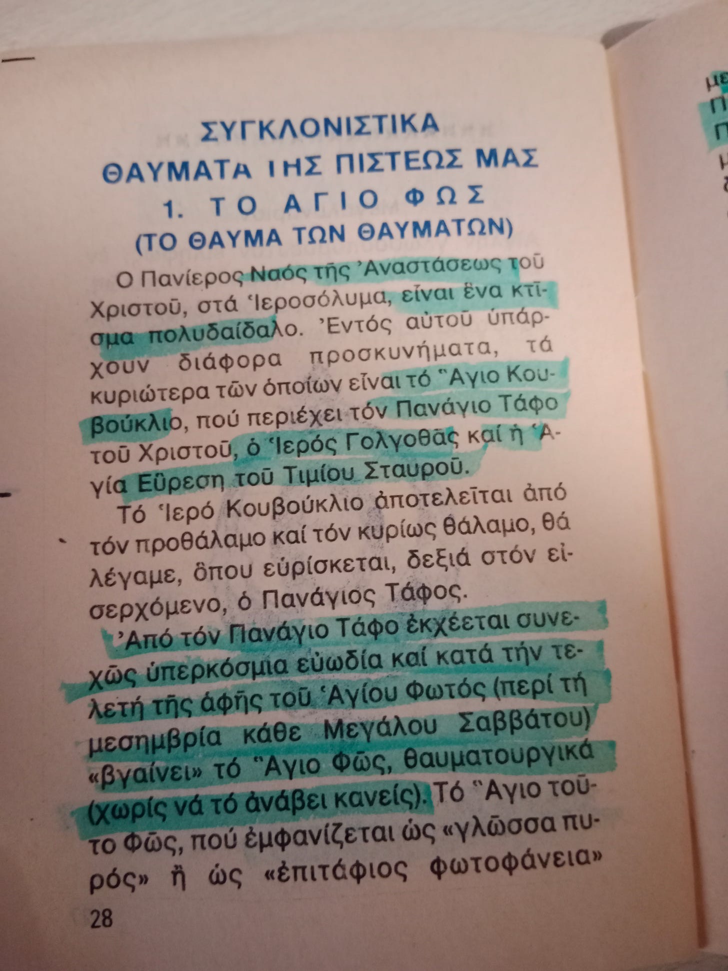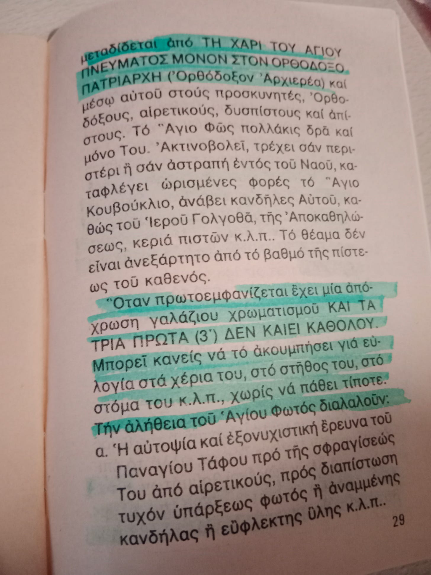 Την κατανυκτική περίοδο της Μεγάλης Εβδομάδας παρατηρούνται έντονες αντιπαραθέσεις μεταξύ των θεοσεβούμενων ανθρώπων και των δήθεν «ορθολογιστών» (στην πραγματικότητα ολιγοπίστων), με τους πρώτους να συγκλονίζονται από το επαναλαμβανόμενο θαύμα της αρρήτου εμφανίσεως του Αγίου Φωτός που σημειώνεται κάθε Μεγάλο Σάββατο, ενώ οι δεύτεροι αμφισβητώντας την θαυμαστή Θεοσημία, αντιμετωπίζουν την διαδικασία της τελετής περίπου ως αγυρτεία.