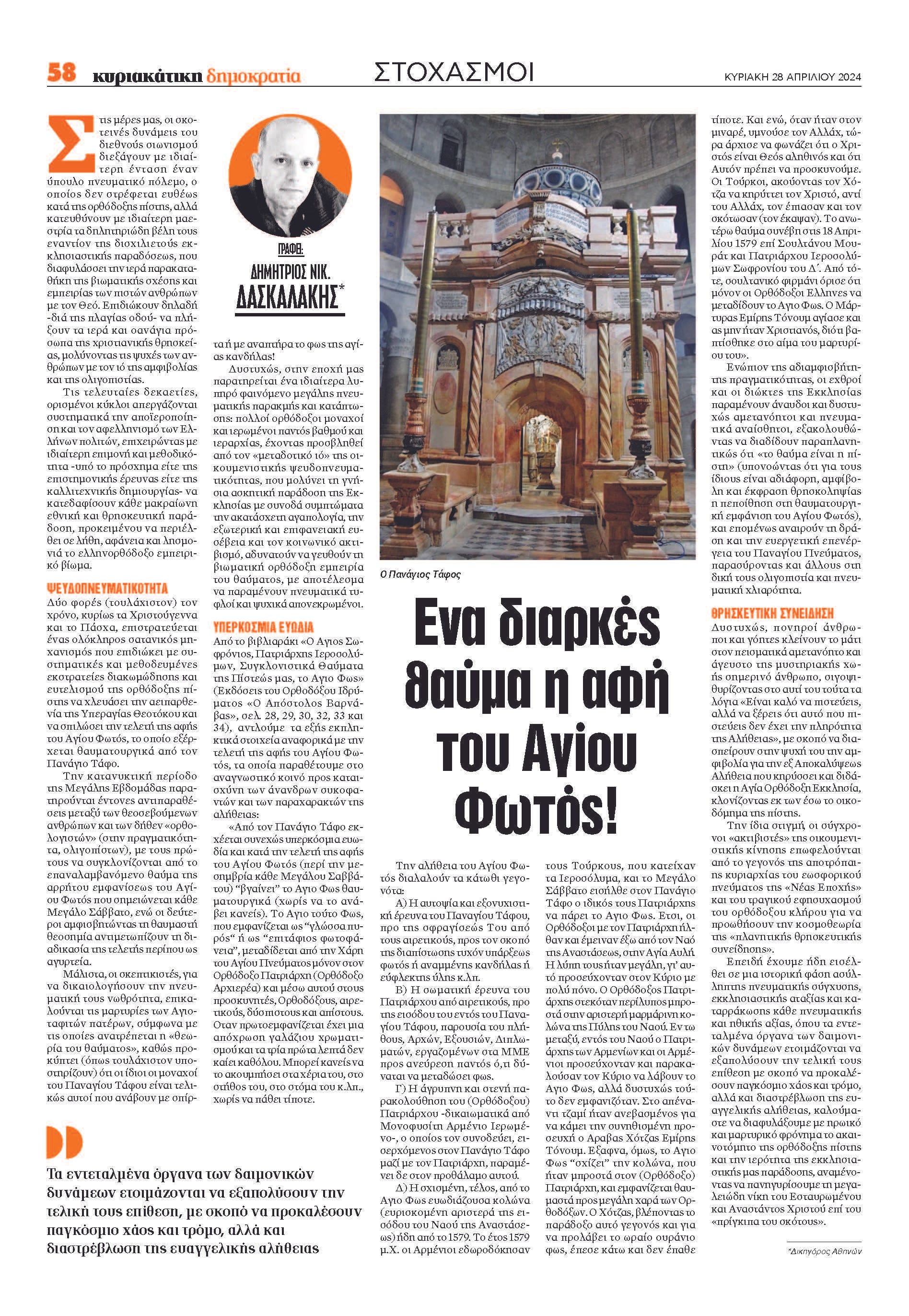 Δημήτρης Δασκαλάκης: Η αφή του Αγίου Φωτός: Ένα διαρκές θαύμα