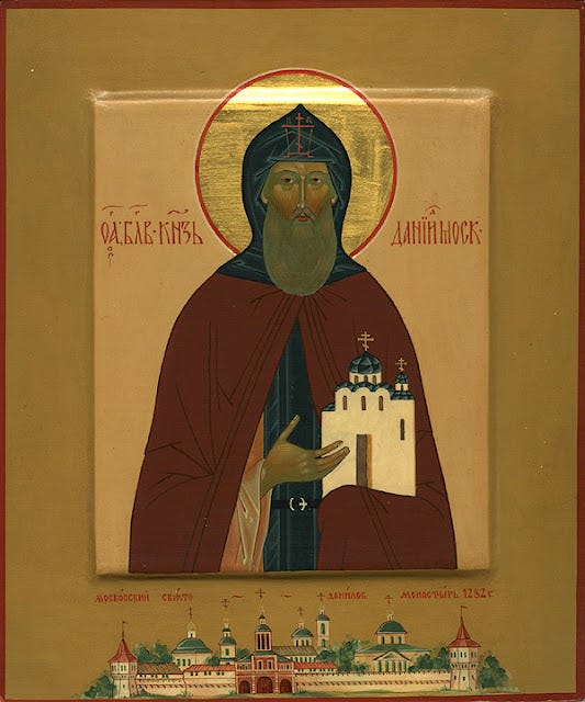 Ὁ Ἅγιος ἔφθασε στὴ Μόσχα τὸ ἔτος 1272 καὶ ἀμέσως οἰκοδόμησε ναὸ καὶ μονὴ πρὸς τιμὴν τοῦ προστάτου του Ἁγίου Δανιὴλ τοῦ Στυλίτου († 11 Δεκεμβρίου).