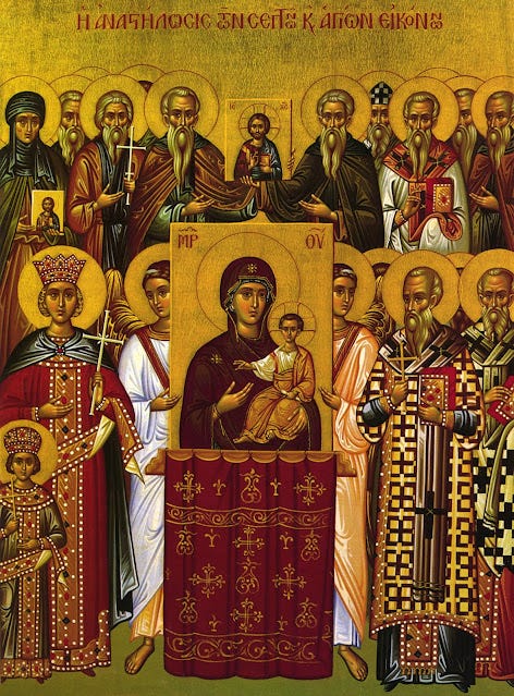 Συνεπῶς, ὅσες εἰκόνες καὶ ἐὰν προσκυνήσωμε τὴν Κυριακὴ τῆς Ὀρθοδοξίας, ὅσες εἰκόνες καὶ ἄν ἔχωμε μαζί μας, γιὰ νὰ πανηγυρίσωμε, ἐὰν δὲν ἀναστηλώσωμε τὴν ἀληθινὴ πίστη τοῦ Χριστοῦ μέσα μας καὶ ἐὰν δὲν συνεργαστοῦμε μὲ τὶς ἀχειροποίητες εἰκόνες Του, τοὺς ἐν Κυρίῳ ἀδελφούς μας, σωτηρία δὲν θὰ βροῦμε.