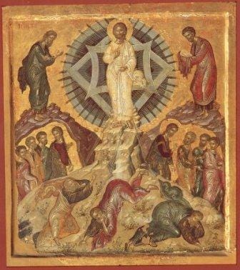 Ἔτσι λοιπὸν ὁ Χριστὸς θέλοντας νὰ δείξει στοὺς μαθητές του μία πρόγευση τῆς αἰώνιας ζωῆς, παρέλαβε τρεῖς ἀπὸ τοὺς μαθητές του, τὸν Πέτρο, τὸν Ἰάκωβο καὶ τὸν Ἰωάννη καὶ τοὺς ἀνέβασε σὲ ἕνα βουνό. Ἐκεῖ μεταμορφώθηκε καὶ ἔλαμψε τὸ πρόσωπό Του σὰν τὸ φῶς. Καὶ τότε ἐμφανίστηκαν ὁ Μωϋσῆς καὶ ὁ Ἠλίας οἱ ὁποῖοι συνομίλησαν μαζὶ μὲ τὸν Ἰησοῦ.
