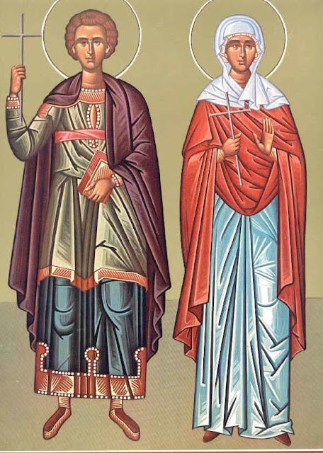 Ἀγνείας τῷ φωτί, τὰς ψυχὰς φωτισθέντες, καὶ κόσμου τὴν ἀχλύν, ὁμοφρόνως λιπόντες, λυχνία ὠς δίφωτος, τοῖς πιστοῖς ἀνελάμψατε, δι’ ἀσκήσεως, καὶ μαρτυρίου τοῖς ἄθλοις, ζεῦγος ἔνδοξον, ἠ Ἐπιστήμη ἡ θεία, σὺν τῷ Γαλακτίωνι.