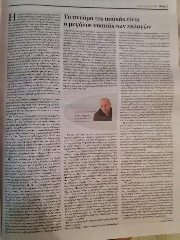 Το παρόν άρθρο δημοσιεύτηκε στις 9-7-2023 στο φύλλο της «ΚΥΡΙΑΚΑΤΙΚΗΣ ΔΗΜΟΚΡΑΤΙΑΣ», σελ. 07β/23.