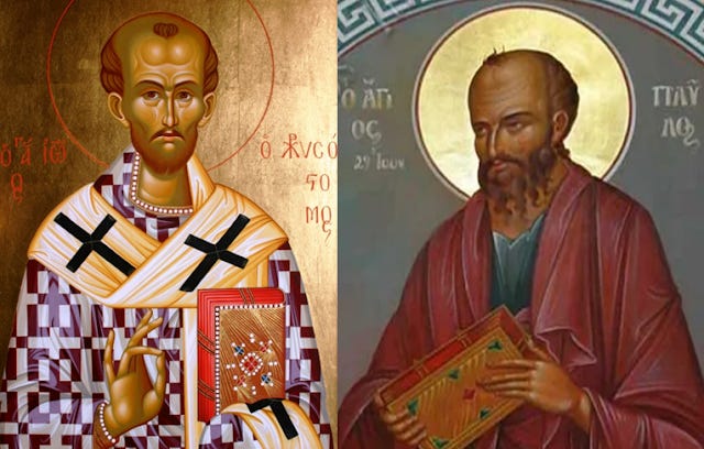 Βλέπεις ότι ο λόγος δηλώνει την ταπεινοφροσύνη και τη μετριοφροσύνη; Ήδη εκείνος κατοικούσε στον ουρανό, γι’ αυτό και έλεγε: «Οὐδὲν γὰρ ἐμαυτῷ σύνοιδα· ἀλλ᾿ οὐκ ἐν τούτῳ δεδικαίωμαι· ὁ δὲ ἀνακρίνων με Κύριός ἐστιν (: Και δεν θεωρώ ούτε τον εαυτό μου αρμόδιο για να βγάλω απόφαση για τη διαχείρισή μου ως οικονόμου του Θεού, διότι ναι μεν η συνείδησή μου δεν μου μαρτυρεί καμία ενοχή, αλλά κι αυτό δεν φτάνει για να είμαι δικαιωμένος. Διότι ο Κύριος είναι ο μόνος αρμόδιος να κρίνει αν πράγματι υπήρξα καλός οικονόμος)» [Α΄Κορ. 4,4]· και πάλι: «Τὸν ἀγῶνα τὸν καλὸν ἠγώνισμαι, τὸν δρόμον τετέλεκα, τὴν πίστιν τετήρηκα(:Έχω αγωνιστεί τον καλό αγώνα για τη διάδοση του Ευαγγελίου. Έχω φτάσει στο τέλος του δρόμου της αρετής και της εκπληρώσεως τη αποστολή μου. Έχω διαφυλάξει την πίστη)»[Β΄Τιμ.4,7].
